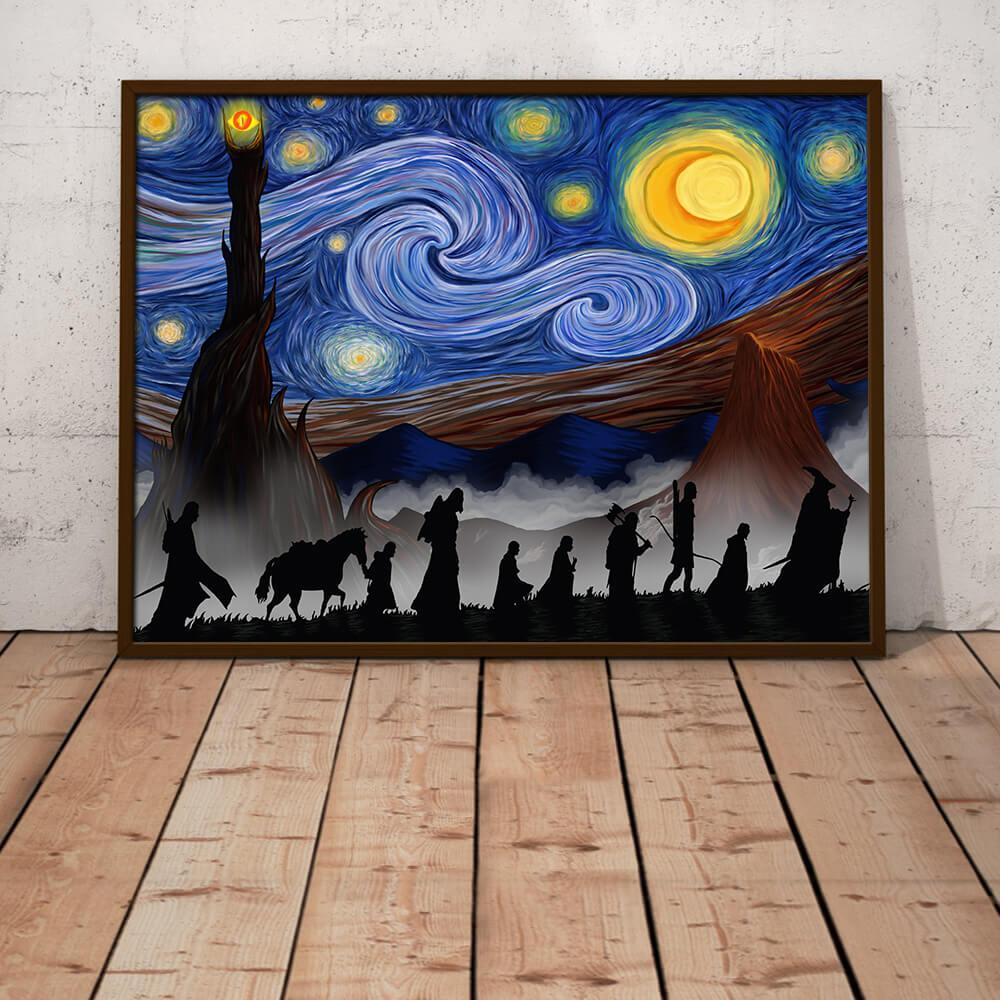 Lord of The Rings Fellowship Starry Night Style Wall Art Poster