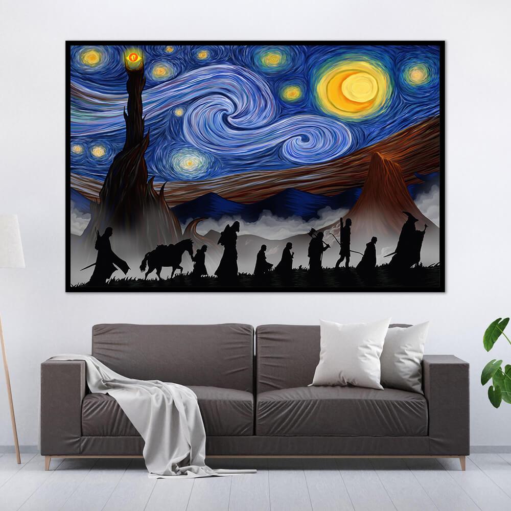 Lord of The Rings Fellowship Starry Night Style Wall Art Poster is designed with a 100% premium canvas that comes with utmost durability.